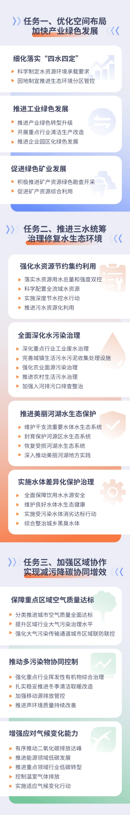 《規(guī)劃》提出7方面重點(diǎn)任務(wù):一是優(yōu)化空間布局,加快產(chǎn)業(yè)綠色發(fā)展;二是推進(jìn)三水統(tǒng)籌,治理修復(fù)水生態(tài)環(huán)境;三是加強(qiáng)區(qū)域協(xié)作,實(shí)現(xiàn)減污降碳協(xié)同增效;四是加強(qiáng)管控修復(fù),防治土壤地下水污染;五是堅(jiān)持生態(tài)優(yōu)先,實(shí)施系統(tǒng)保護(hù)修復(fù);六是強(qiáng)化源頭管控,有效防范重大環(huán)境風(fēng)險(xiǎn);七是構(gòu)建治理體系,提升治理水平。