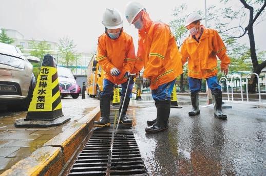 昨天9時(shí)許,在朝陽(yáng)區(qū)管莊路上的一處排水口旁,兩名北京排水集團(tuán)的防汛人員先用錐桶做好警戒防護(hù),接著用鉤子鉤起雨水箅子,加速排水。在朝陽(yáng)區(qū)金泰橋下凹橋區(qū),北京排水集團(tuán)壩河流域分公司的工作人員早六時(shí)就到達(dá)現(xiàn)場(chǎng)進(jìn)行值守。“這個(gè)點(diǎn)位地勢(shì)較低,短時(shí)雨量大的情況下容易造成積水,為避免影響交通,我們提前做好了準(zhǔn)備。”現(xiàn)場(chǎng)一位工作人員說(shuō)。