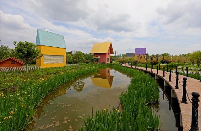 西安航天基地第一凈水廠處理設(shè)施上方的濕地公園一角。