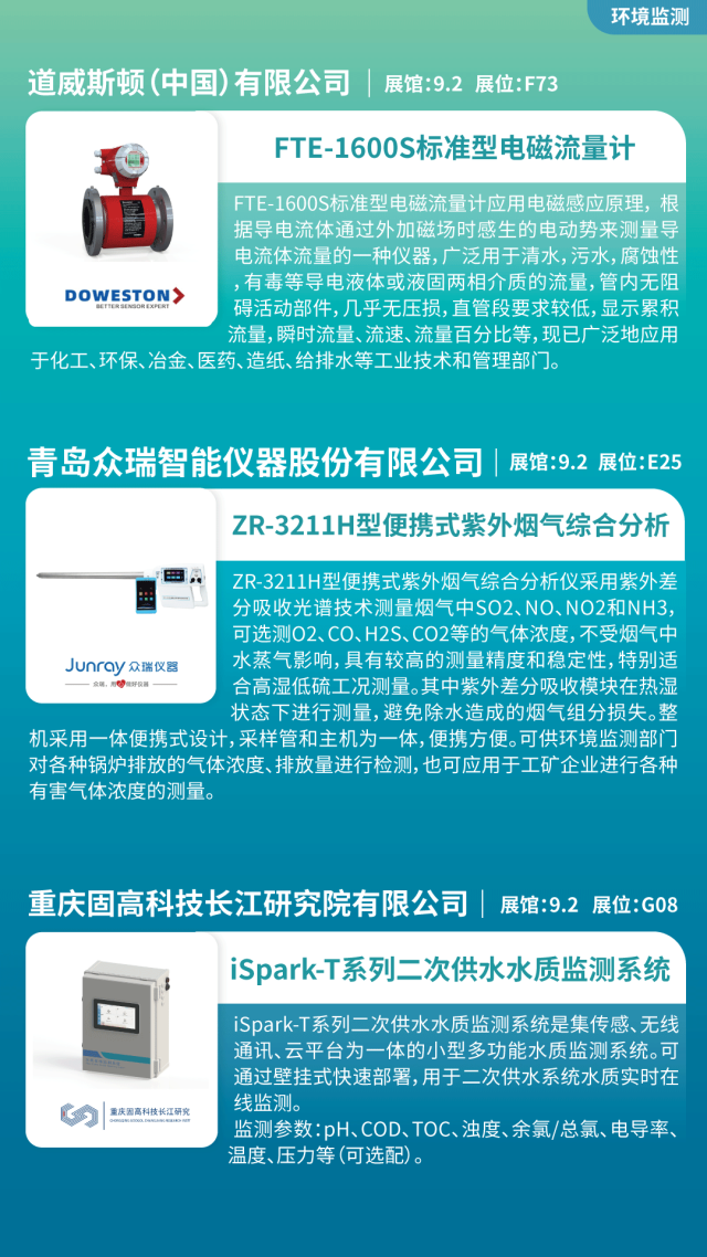 傳感器、水質(zhì)檢測系統(tǒng)、土壤重金屬分析儀、煙氣排放監(jiān)測系統(tǒng)、電磁流量計(jì)、智慧AI監(jiān)控系統(tǒng)、便攜式有毒揮發(fā)氣體分析儀、粉塵濃度測量儀、噪聲在線監(jiān)測系統(tǒng)等。