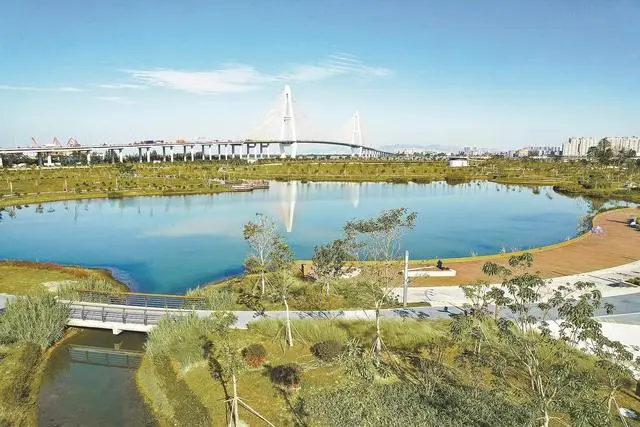 “公園設計時便考慮到了這一點,通過園內池塘的水流調蓄功能、透水混凝土路面的滲水功能、綠地草坪草溝的凈水功能,能有效解決內澇難題?!鄙穷^市濠江區建設工程代建中心主任張漢標表示,公園內的海綿體系如同“毛細血管”,雨水經此進入市政管道、排入海水中,從源頭控制雨水徑流,增加末端調蓄空間約2萬立方米,達到雨水的滲透、滯留、凈化,實現“小雨不積水,大雨不內澇”。
