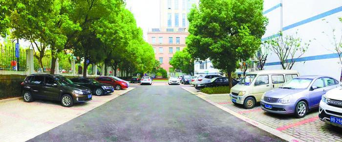 道路工程統(tǒng)一進(jìn)行“白改黑”改造,結(jié)合雨落水管斷接,同步翻建混凝土建筑散水坡,避免雨水入滲底層自行車庫;結(jié)合海綿措施,將破損停車場改造為內(nèi)嵌式透水植草停車場,結(jié)構(gòu)層采用鋼渣透水混凝土,面層采用模框植草磚,雨水直接下滲,在保證透水的基礎(chǔ)上又增添了綠意。
