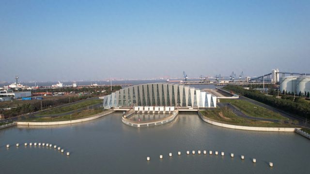 兩個水閘可引可排,一天兩潮的長江水可以通過兩個水閘進行引水,來補充整個浦東北片區域所需的水資源。而泵站主要是排澇功能,田利勇介紹說如果浦東遭遇大的暴雨,雨水來不及排,通過泵站強排進入長江口可以實現該區域的除澇安全。這四臺水泵,每臺水泵的流量是22.5立方米每秒,總的流量90立方米每秒。這個泵站如果全部啟用的話,兩天基本上可以把西湖水抽干。