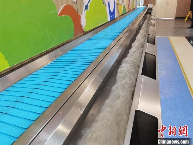 走進(jìn)浙大城市學(xué)院三食堂,學(xué)生將食物殘渣倒入收集槽時,持續(xù)涌出的流水將殘渣沖至設(shè)有過濾網(wǎng)的收集箱,過濾后的水又循環(huán)至殘渣收集槽,繼續(xù)使用。此過程中,較臟的水被排出洗碗機(jī)系統(tǒng),而安裝于收集槽上方的自來水出口,既方便洗手,也可補(bǔ)充沖洗水,實現(xiàn)“一水多用”。