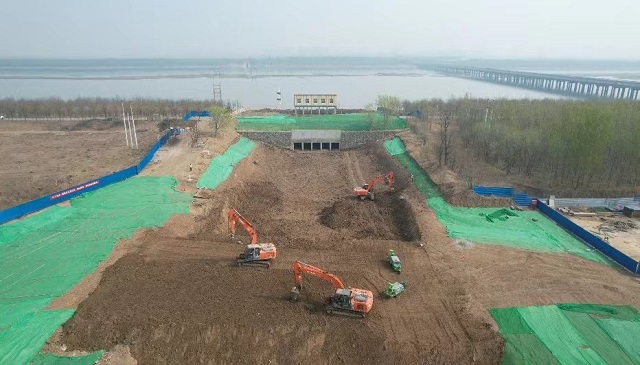 圖為天津靜海區良王莊泵站改擴建工程施工現場。新華社記者劉詩平攝