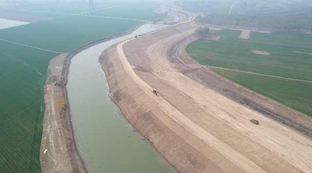 已經完成的霸州東淀北大堤水毀修復項目鳥瞰。新華社記者劉詩平攝