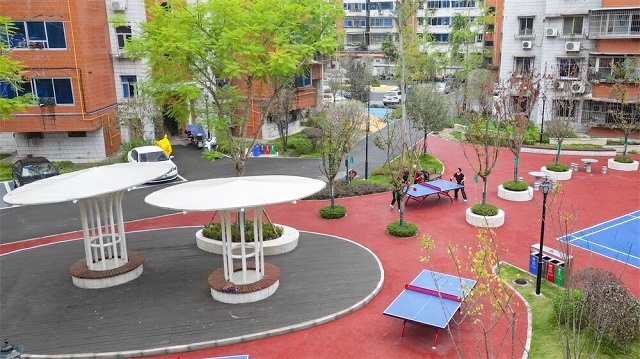 “按照海綿城市理念,在地磚下鋪設管溝,自然引流、匯集地面的雨水,并挖掘兩處淺凹地蓄水,種植喜水植物,就形成了雨水花園。”趙翔說,在臨街景觀帶增設健身器材、兒童娛樂設施等公共設施,實現海綿與娛樂、自然與功能有機融合,以開放包容的形式融合了小區(qū)與社區(qū)的關系。