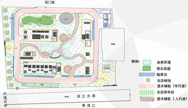 蒙自泵站擁有三個(gè)“第一”——上海第一座多功能生態(tài)排水泵站,第一座開放式的花園泵站,是全國第一座排水文化公園。上海市排水公司負(fù)責(zé)人介紹,蒙自泵站除了雨水泵、截流泵、調(diào)蓄池等排水設(shè)施外,還用雨水花園、透水道路等不同海綿構(gòu)件形成海綿調(diào)蓄,完整地還原水在社會(huì)中“使用、排放、收集、處理、回歸”的循環(huán)過程。