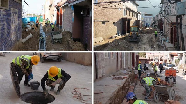 走近牟家坪村和鄭家莊四隊,街道、小巷、房屋旁施工人員還在高效有序地進行施工作業(yè),隨處可見開挖基槽、鋪設管道、道路拓寬的忙碌施工場景。截至目前,項目已完總進度的約55%,鋪設雨水管道914米,污水管道5123米,建成檢查井281座,對街巷內(nèi)的旱廁、違章建筑進行了拆除改造,硬化拓寬道路2717米。