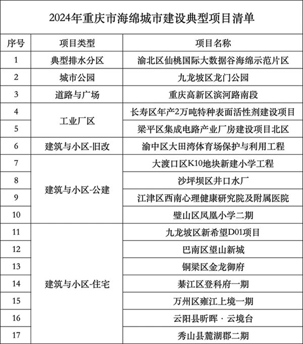 海綿城市是城市綠色發(fā)展的生態(tài)名片,海綿設(shè)施讓城市建設(shè)不僅有“面子”,更有“韌性”。近日,重慶市住房城鄉(xiāng)建委在總結(jié)各區(qū)縣海綿城市建設(shè)項(xiàng)目?jī)?yōu)秀做法基礎(chǔ)上,選取了17個(gè)不同類型、不同做法的項(xiàng)目,形成2024年重慶市海綿城市建設(shè)典型項(xiàng)目清單。