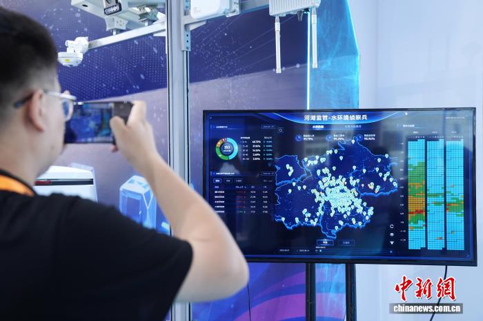 9月11日,在北京舉行的2025年服貿(mào)會(huì)北京水務(wù)科技創(chuàng)新展區(qū),觀眾了解河湖監(jiān)管系統(tǒng)。據(jù)了解,該展區(qū)總面積超800平方米,設(shè)置濱水空間、數(shù)智水務(wù)、健康水業(yè)及水利水電工程建設(shè)四大板塊,集中展示北京水務(wù)在科技領(lǐng)域的技術(shù)突破與示范應(yīng)用。中新社記者張祥毅攝
