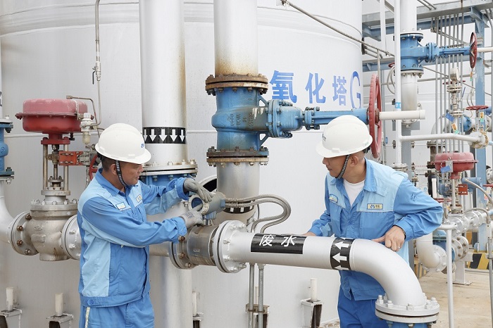 2019年,揚(yáng)州化工園區(qū)下屬投資公司與中化環(huán)境合資成立揚(yáng)州中化化雨環(huán)保有限公司(以下簡稱化雨公司),接手相關(guān)設(shè)施承擔(dān)園區(qū)污水處理任務(wù)。工藝的改進(jìn)讓處理效果有了明顯變化,化雨公司總經(jīng)理張萌告訴記者,最值得一提的是溴離子催化氧化相關(guān)技術(shù)。