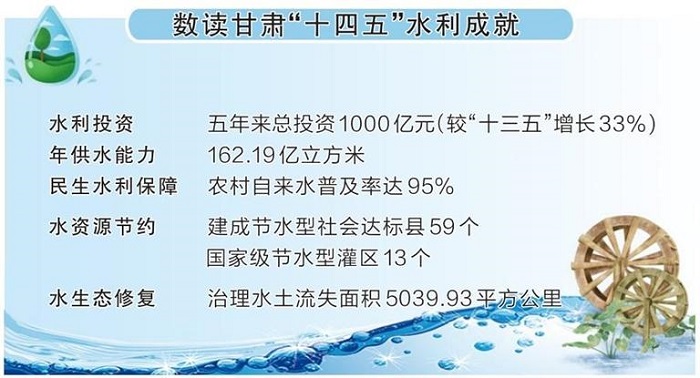 民生水利建設(shè)扎實(shí)推進(jìn) “十四五”以來(lái),全省建成水庫(kù)、淤地壩、小微型調(diào)蓄設(shè)施等“水盆子”1459個(gè),其中引洮工程讓“苦瘠甲天下”的隴中600萬(wàn)群眾吃上干凈甘甜的洮河水。圍繞農(nóng)村供水高質(zhì)量發(fā)展,我省出臺(tái)專項(xiàng)規(guī)劃,推行“3+1”標(biāo)準(zhǔn)化建設(shè)和管護(hù)模式,累計(jì)投入84.39億元,建成農(nóng)村水源保障和管網(wǎng)改造提升工程623處。目前,全省農(nóng)村自來(lái)水普及率達(dá)95%,規(guī)模化供水人口比例達(dá)66%,較“十三五”末分別提高5個(gè)和12個(gè)百分點(diǎn);55個(gè)縣(區(qū))實(shí)現(xiàn)供水縣域“四統(tǒng)一”管理,千人以上集中供水工程凈化、消毒設(shè)施配備率均達(dá)100%,農(nóng)村供水實(shí)現(xiàn)從“有水吃”向“吃好水”的轉(zhuǎn)變。