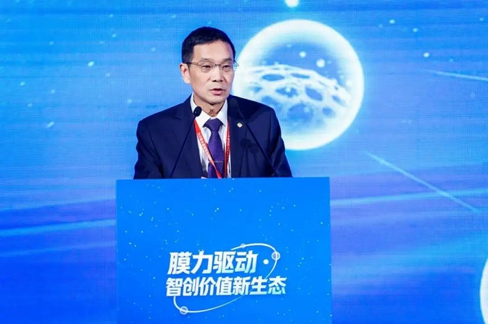 黃浩勇在致辭中表示,在以碧水源為代表的一批民族企業(yè)關(guān)鍵推動下,我國膜技術(shù)已實現(xiàn)從“跟跑”“并跑”到部分“領(lǐng)跑”的歷史性跨越。形成了成熟的產(chǎn)品體系與產(chǎn)業(yè)鏈,并從單一水處理拓展至海水淡化、工業(yè)零排、鹽湖提鋰及新能源等戰(zhàn)略新興領(lǐng)域;面對全球膜技術(shù)競爭進入以“材料創(chuàng)新、系統(tǒng)集成、綠色化與智慧化”為特征的深水區(qū),黃浩勇提出未來發(fā)展的三大核心路徑:一是推動技術(shù)范式從“污染去除”向“資源回收”轉(zhuǎn)變,使水處理設(shè)施成為水、能源與營養(yǎng)物質(zhì)的生產(chǎn)工廠;二是強化膜技術(shù)與材料科學、人工智能、能源科學等多學科的深度融合,構(gòu)建以膜為核心的多功能技術(shù)平臺;三是關(guān)注膜技術(shù)在全生命周期的可持續(xù)性,貫穿綠色設(shè)計制造、低碳運行直至材料的高效回收。